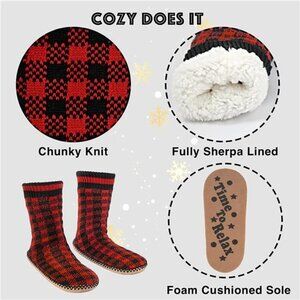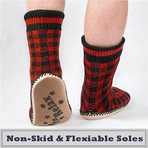 Men's Slipper Socks Fleece Lined Non-skid Soles, Knitted Warm Fuzzy House Shoes