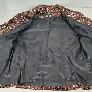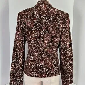 Madison Studio Women 8 Paisley Blazer Jacket Cotton Blend Velvet Look Boho Retro