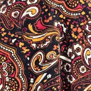 Color: Multi — black, red, orange, ivory paisley pattern