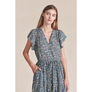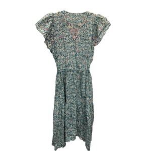 Trovata Birds of Paradis Kristi Dress Sea Mist Floral XS Cotton Blend Midi