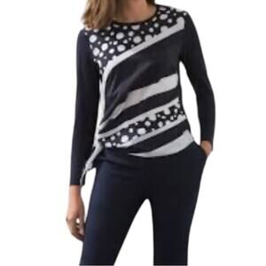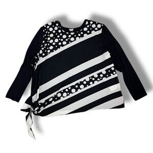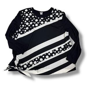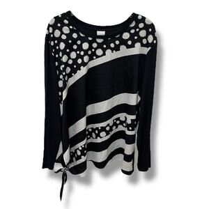Chico’s Touch Of Cool relaxed oversized long sleeve side tie top in an abstract design.