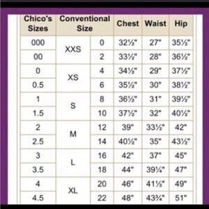 Chico size 4 = size 20/XL (see photo of Chico’s size chart above)
