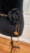 Add a touch of elegance to your outfit with this chic black and gold chain belt. Featuring a beautiful floral accent, it's perfect for enhancing any look.