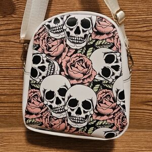 Mini Skull and Flower Print Lightweight Crossbody Bag Gothic Pink