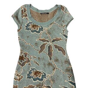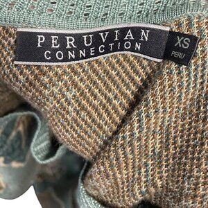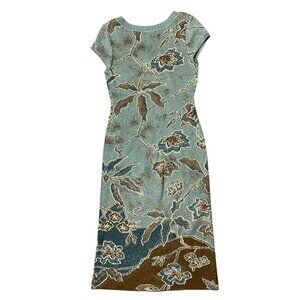 Peruvian Connection XS Floral Sheath Dress Cap Short Sleeve Green Blue Pima Cott