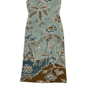 Peruvian Connection XS Floral Sheath Dress Cap Short Sleeve Green Blue Pima Cotton