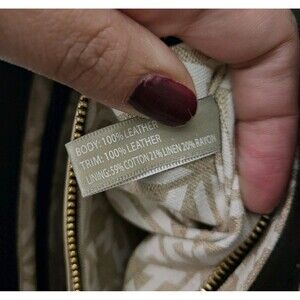 Crafted from 100% genuine leather with a suede front panel, this medium-sized bag features a magnetic snap closure, adjustable crossbody strap, and gold-tone hardware. The interior is fully lined in India Hicks’ signature monogram fabric and includes a zippered pocket for essentials, while the exterior offers a convenient back slip pocket.