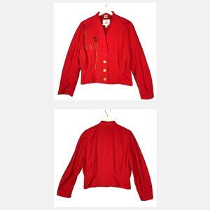 Mondi Blazer Women EU 42 US 14 Red Wool Blend Embroidered Vintage Jacket