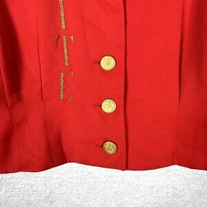 Retvintage Mondi red jacket retro wool blend gold buttons 1980s German designer embroidered statement piece blouson cropped elegant bold