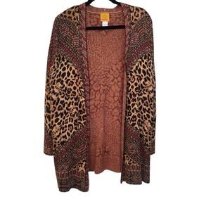 Ruby Rd. Open Front Animal Print Cardigan Sweater Large