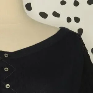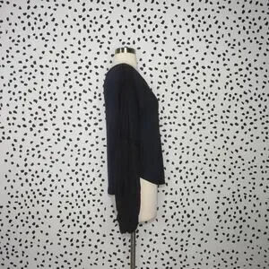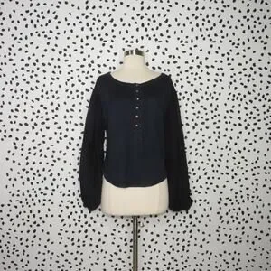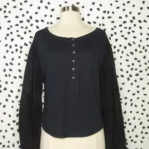 Free People Navy Mixed Media Light Magic Henley Balloon Sleeve Top