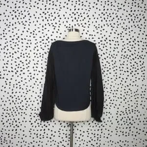 Size xsmall, very good condition, brand plate fell off, balloon sleeves, contrast stitches, curved hem, smocked cuffs, 100% cotton