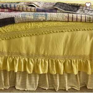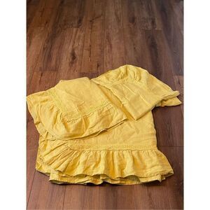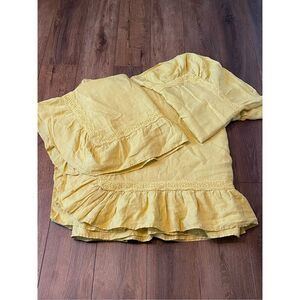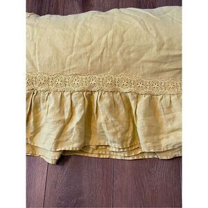 Pottery Barn Green Row Linen Ruffle Crochet Duvet Cover & Sham Twin Marigold