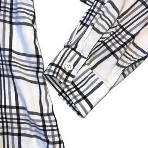 mySTYL Womens Shirt Top Plaid Button Up Long Sleeve Black White Pullover Large