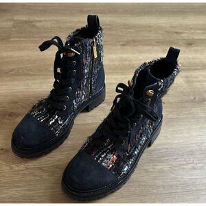 NWOT KURT GEIGER LONDON Women's Kensington Tweed Lace Up Combat Boots Sz 38. Has some small scuffs see pictures. Does not come with box.