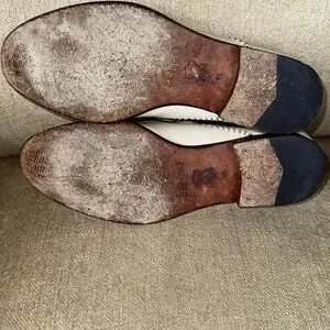 Gently used with some minor scuffs/scratches mostly on instep portion. I have not tried shoe polish or cleaner/conditioner and I imagine this would help diminish these