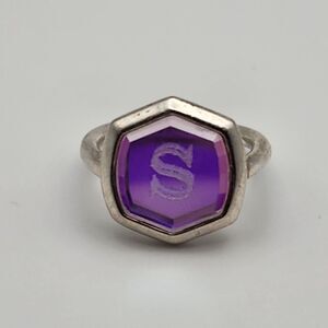 Kendra Scott Davis Silver Tone Irridescent S Engraved Glass Ring (5)