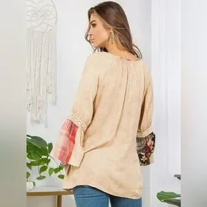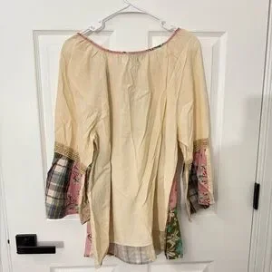 Young Threads Mixed Print Patchwork Boho Floral Tunic Top Latte Size Large NWT