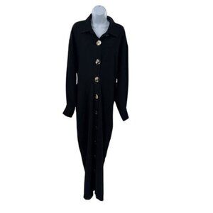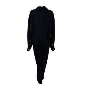 Tuckernuck NEW Black Petra Long Sleeve Gold Hammered Button Midi Dress Size L