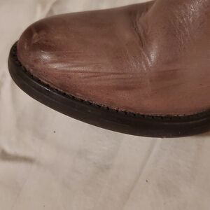 Beautiful buttery bussola taupe leather Trapani boots. Handmade in Italy. Side zipper, block heel, burnished toe. Suede backing provides some stretch. Note boots have some scratches and wear, reflected in photos. Approximate measurements included, please ask any and all questions before purchasing!