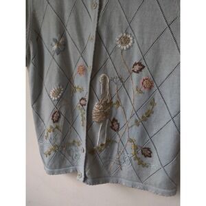 Vintage Alfred Dunner Women's Cardigan Sweater Light Blue Embroidered Size Large