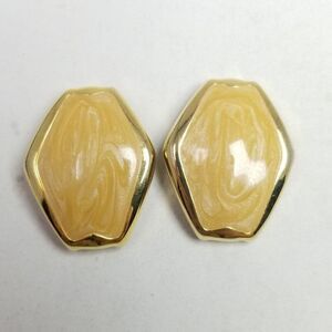 Vintage Cream Enamel Gold Tone Clip On Earrings, Retro 80s Style, Estate