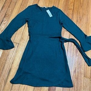 francesca's Women's Faux Wrap Bell Sleeve Green Dress Size Medium