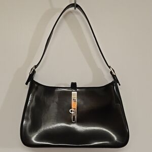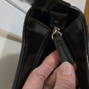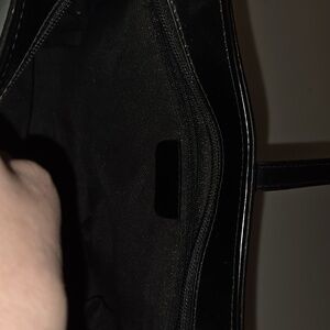Beautiful Vintage Bag. Smooth Leather, may be faux leather . Beautiful inside and out. Unknown brand. Very good condition. Silver hardware. Zip and Buckle clasp closure.