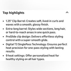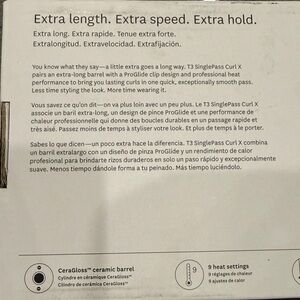 Brand new in box T3 SinglePass Curl X Extra-Long Barrel 1 1/4"Curling Iron with 9 Heat Settings and Ceramic Barrel for Fast Styling and Lasting Results on All Hair Types. You can see where a sticker was on the box, see photos.