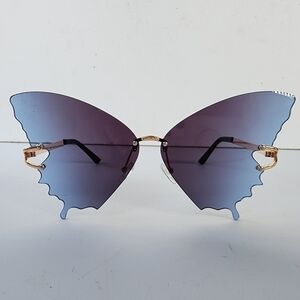 Fun rimless butterfly wings sunglasses in a blue gradient color.