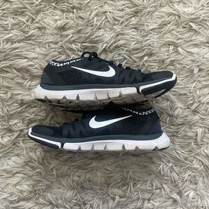 Black & White Training Flex Supreme TR3 Sneakers by Nike are in very good used condition. Mesh outer. White Swoosh. Lace up style. Cushioned footbed. Graphic on footbed worn and worn off in places. Rubber traction sole. Open to offers. Quick Ship. Ladies Size 10.