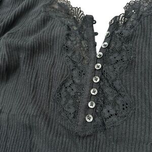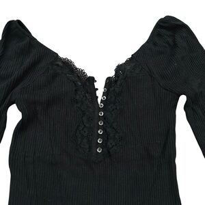 Free People To the West Black Lace Long Sleeve Top Size small