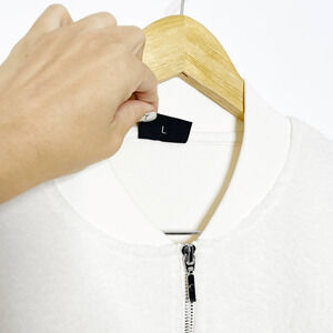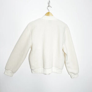 Zyia Active. Womens Large. Flying V Fleece Jacket. White. Teddy Sherpa material. Full zip. Thick cozy material. All measurements are approximate and taken flat and un-stretched.