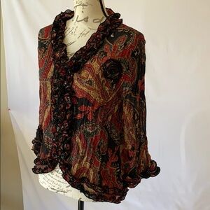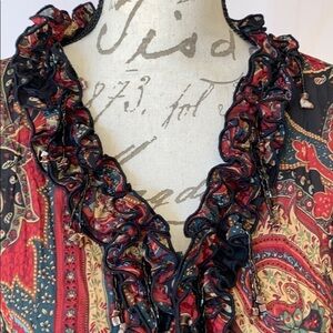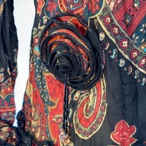 Agora SzM Ruffle Blouse with Beads & Fabric Flower. Good used condition.