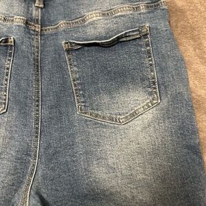 Black Label Blue Denim Overalls Shorts with Fray Hem - Sz. XL