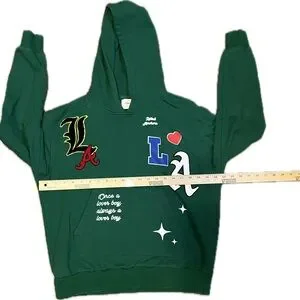 Hoodie is preowned in good condition! Clean, no picks or tears. Hoodie is definitely broken in, slightly faded, but still looks great. There are two slight stains on the front poco. They’re very light, hard to see. Please reference last photo.