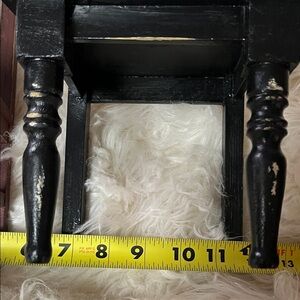 Charming set of two miniature wooden chairs. One chair is black with a classic design. The other is burgundy with a slatted back. Perfect for decor or dollhouse settings. ‼️ Not from a smoke free home, bought from a auction I attended