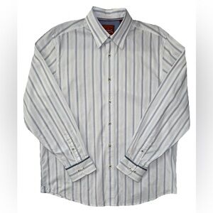 Tommy Bahama Jeans Flip Cuff Striped Button Up Shirt Men L Blue White Beach Camp