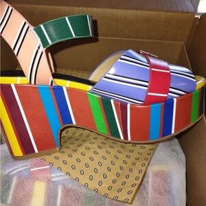 Charlotte Stone Colorful Striped Platform Sandals New in box, never worn