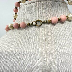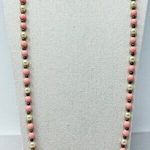 Long Bead Necklace Layering Retro Pink Coquette Feminine Mid-Century Faux Pearl