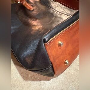 Valentina Black and Brown Shoulder Bag with Leather Handles