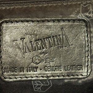 This Valentina shoulder bag combines a sleek black body with rich brown leather handles, offering both style and durability. Its classic tote shape and medium to large size make it perfect for everyday use, while the leather accents add a touch of elegance.