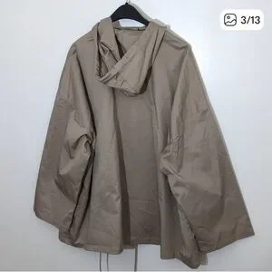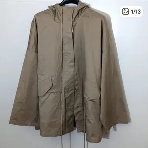 Chic and practical tan hooded jacket. Anorak style with front snap closure.