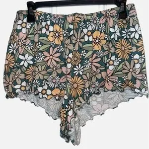 HOLLISTER GILLY HICKS- WOMENS GREEN & PINK FLORAL SLEEPWEAR SHORTS SIZE LARGE