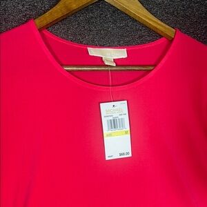 This vibrant pink blouse from Michael Kors features stylish cut-out details and short sleeves, making it a standout piece in any casual wardrobe. Its classic crew neckline and comfortable knit fabric ensure a perfect blend of style and comfort.