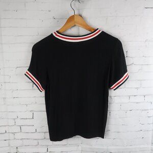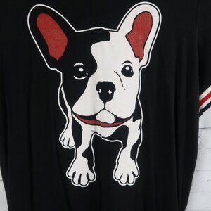 SUPER SOFT BLACK WHITE & RED FRENCH BULLDOG PRINT SHORT SLEEVE CROP TOP SIZE SMALL BY GAZE PRE OWNED NO FLAWS