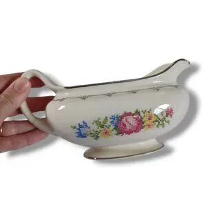 Vintage Homer Laughlin Gravy Boat Eggshell Nautilus O51N5 Floral Needlepoint USA