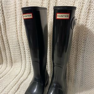 Sleek black Hunter boots. Perfect for winter and rain. Durable and stylish.