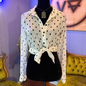 Fun & Flirt by Japna Sheer “Polka Dot” Skull Print Blouse Size XS