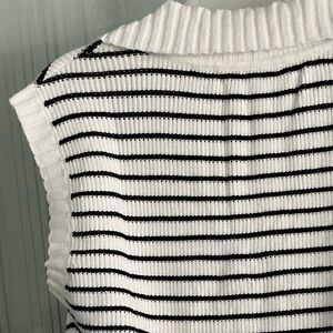 WOMENS BLACK & WHITE STRIPED SLEEVELESS SWEATER VEST